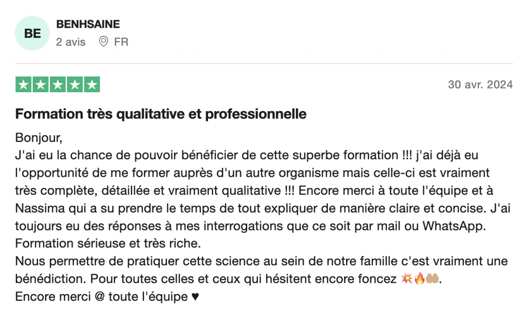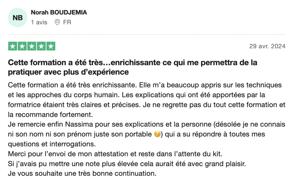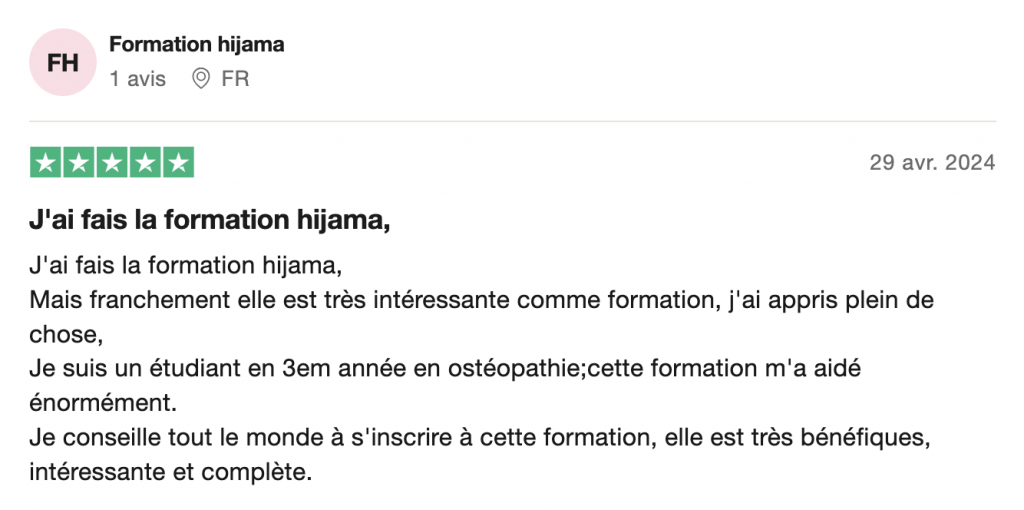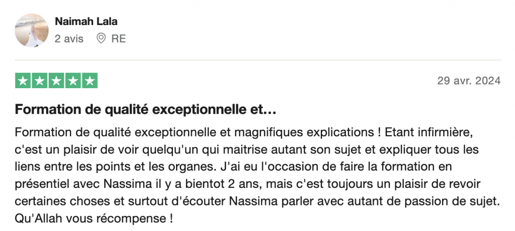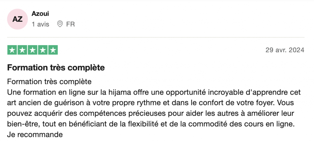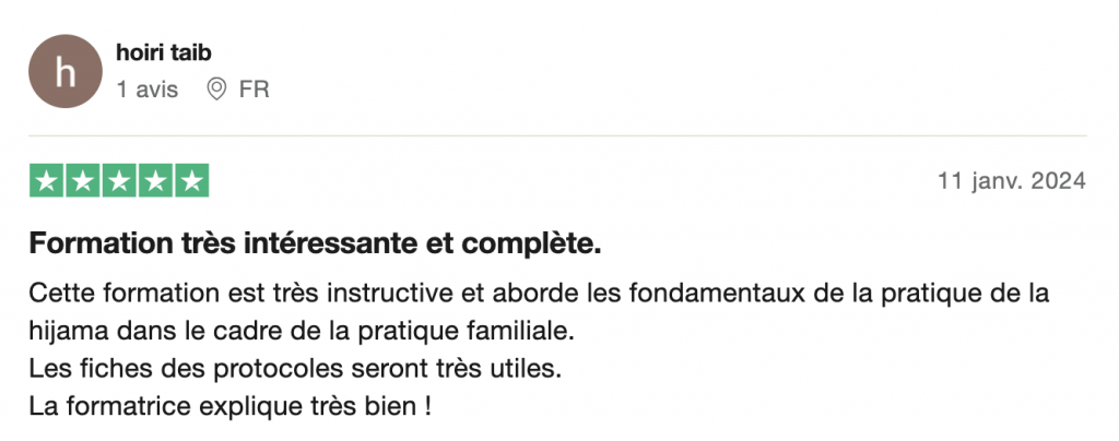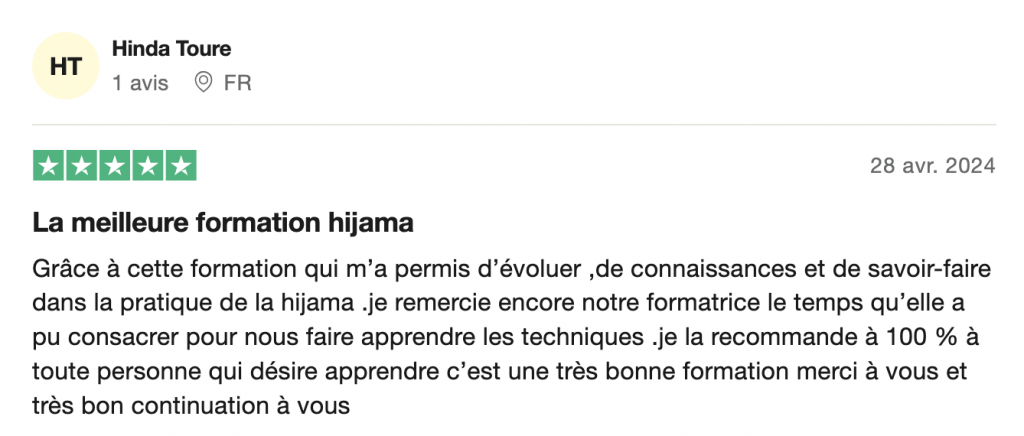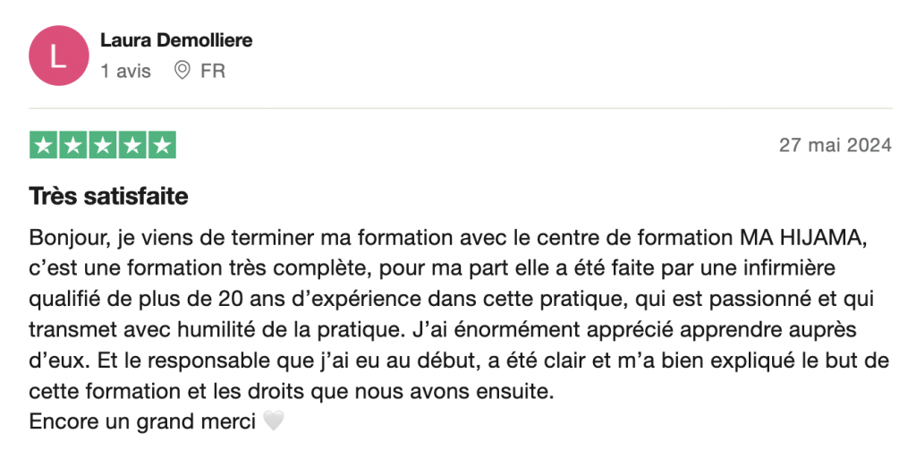 "Mes encouragements à toute l'équipe Ma Hijama ! Je recommande"